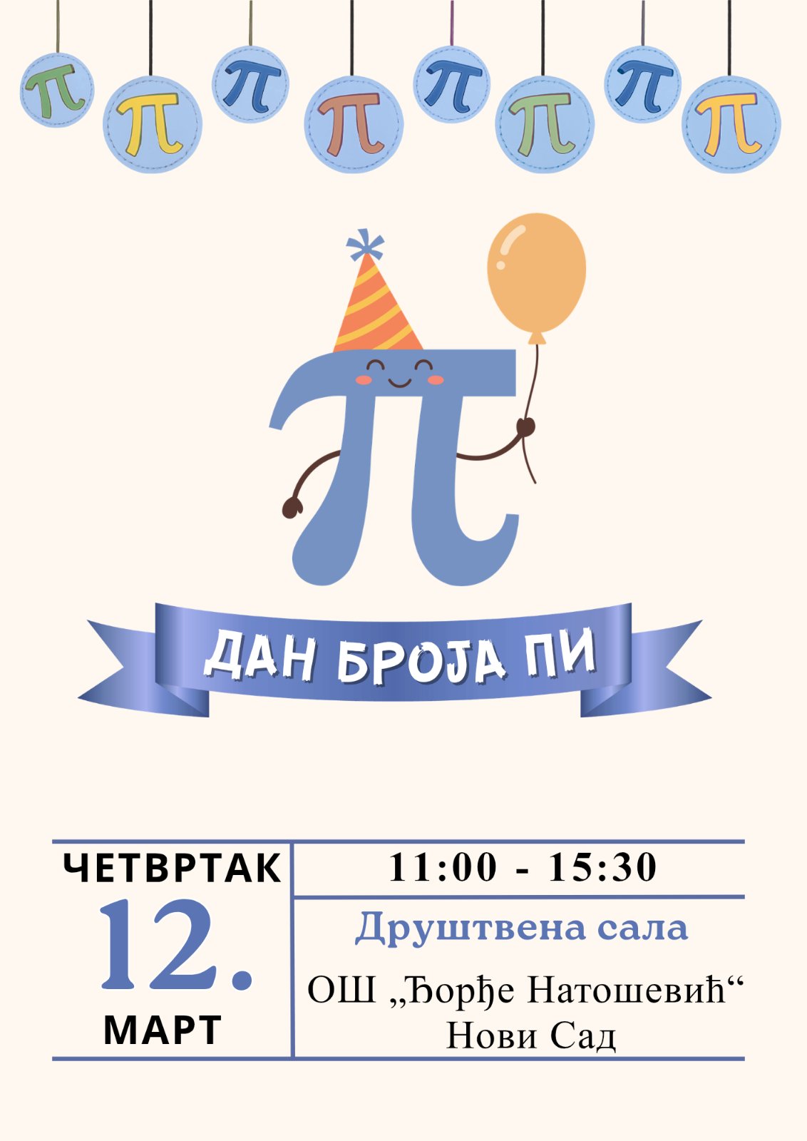 Поводом обележавања 14. марта – Дана броја π, у нашој школи реализован је пројекат „Дан броја Пи – Магија једног броја“.