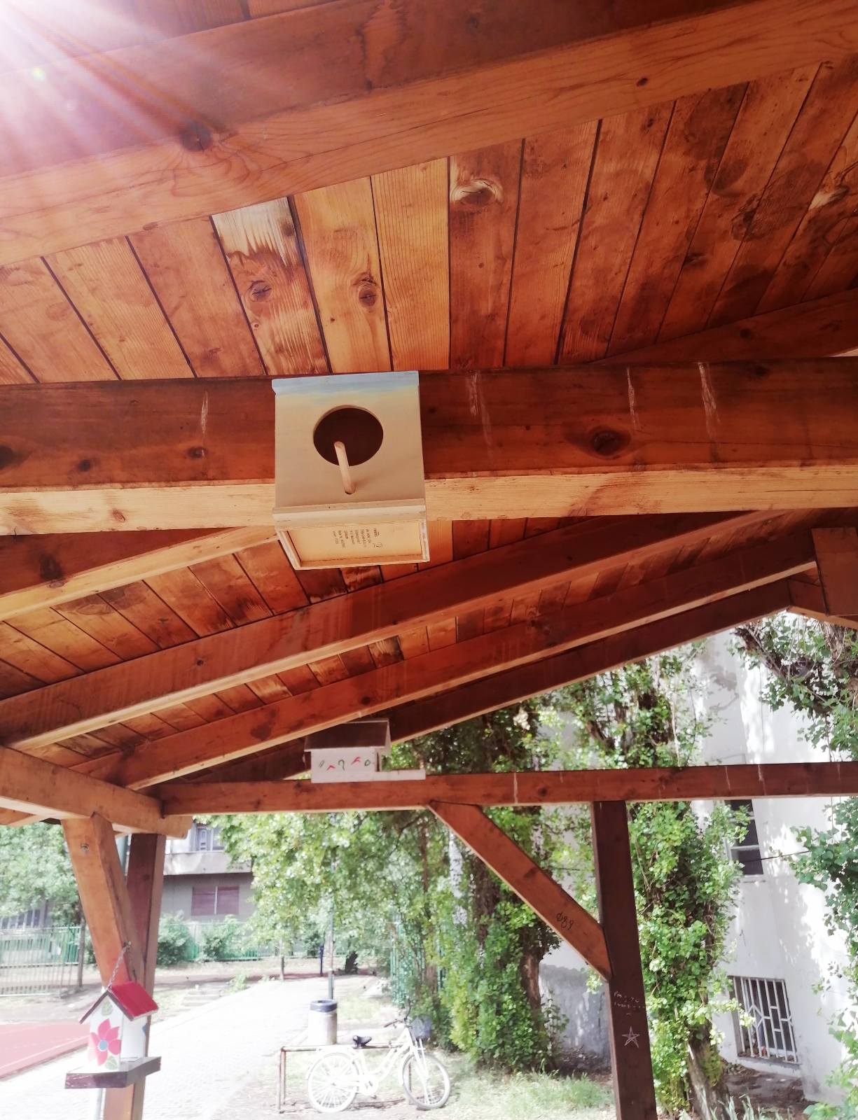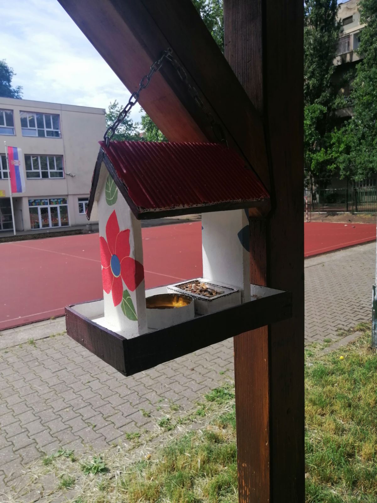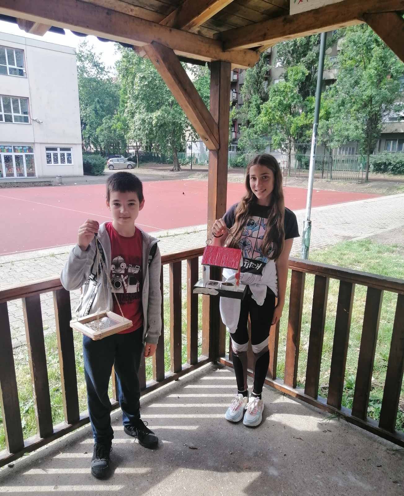 Наши креативни петаци су на часу биологије су направили хранилице за птице. Хранилице су, заједно са наставницом биологије, поставили у школском дворишту.